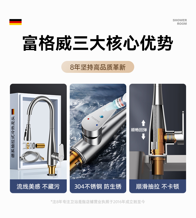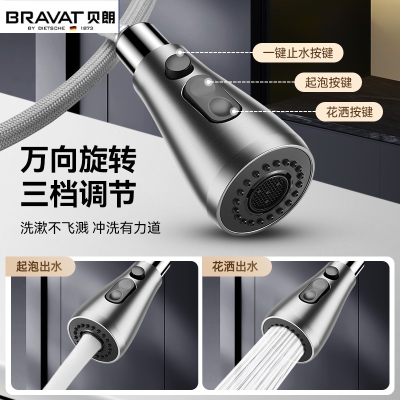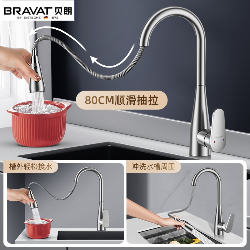 首页 >> 德国贝朗304不锈钢厨房洗菜盆抽拉式水龙头冷热两用水槽专用伸缩