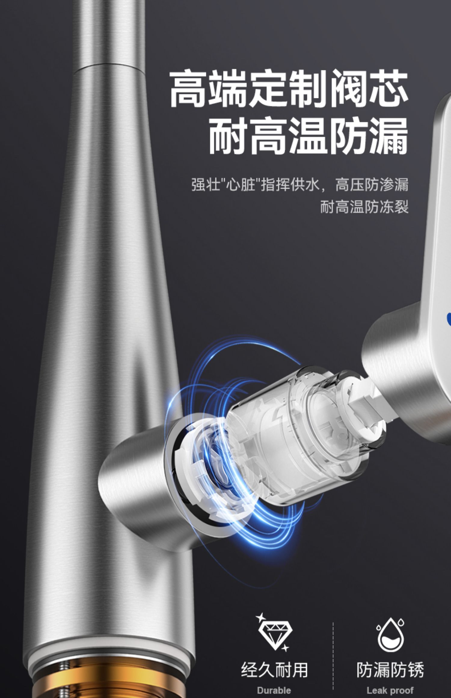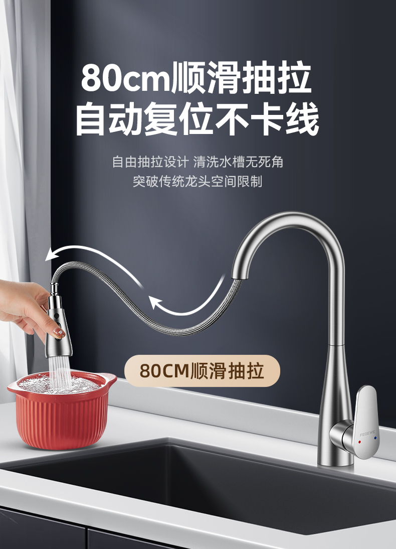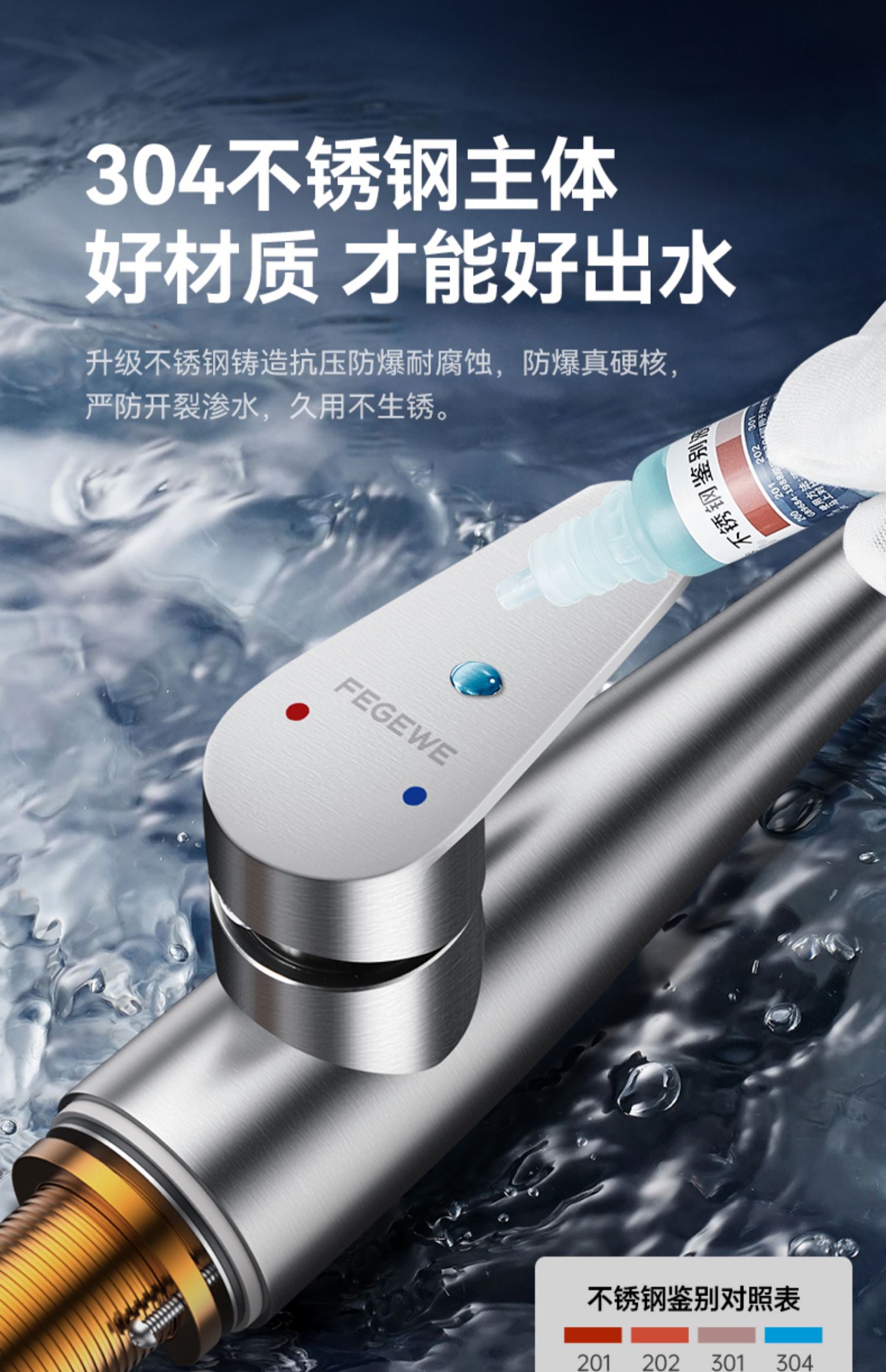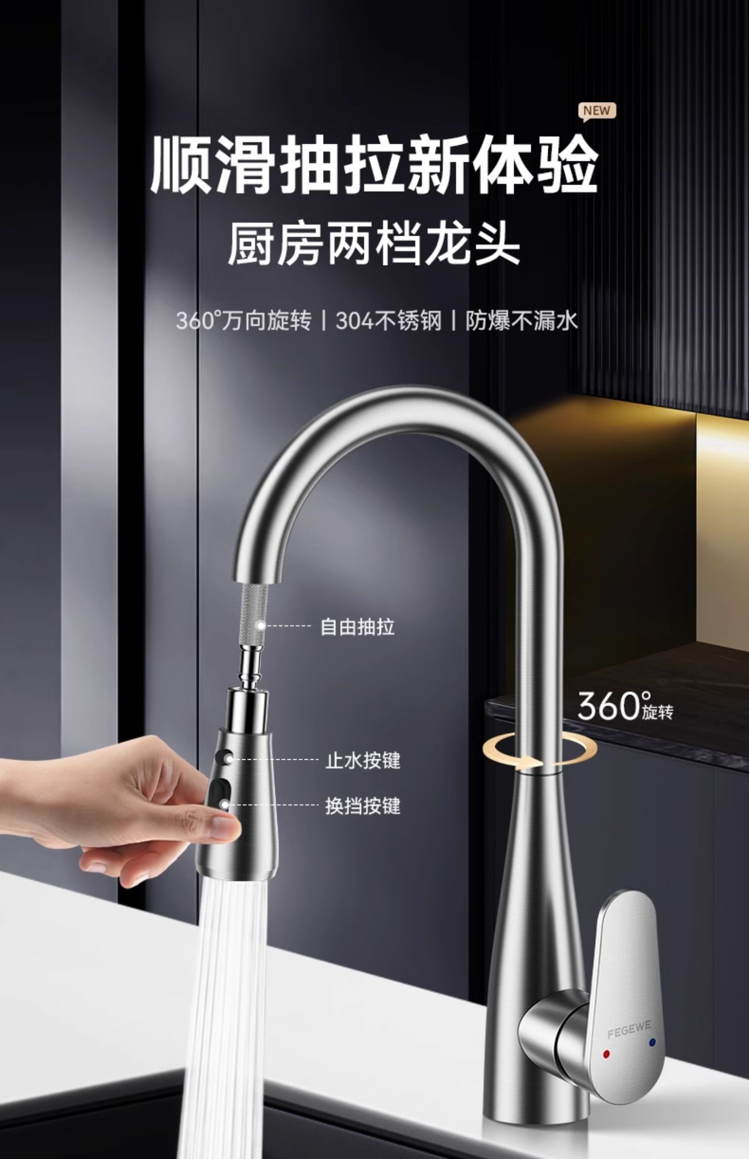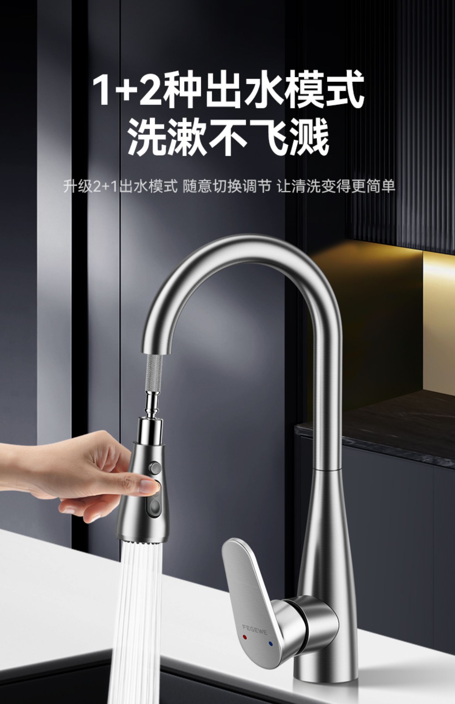 304不锈钢【拉丝银】◆冷热抽拉三档(顺滑抽拉不卡顿)