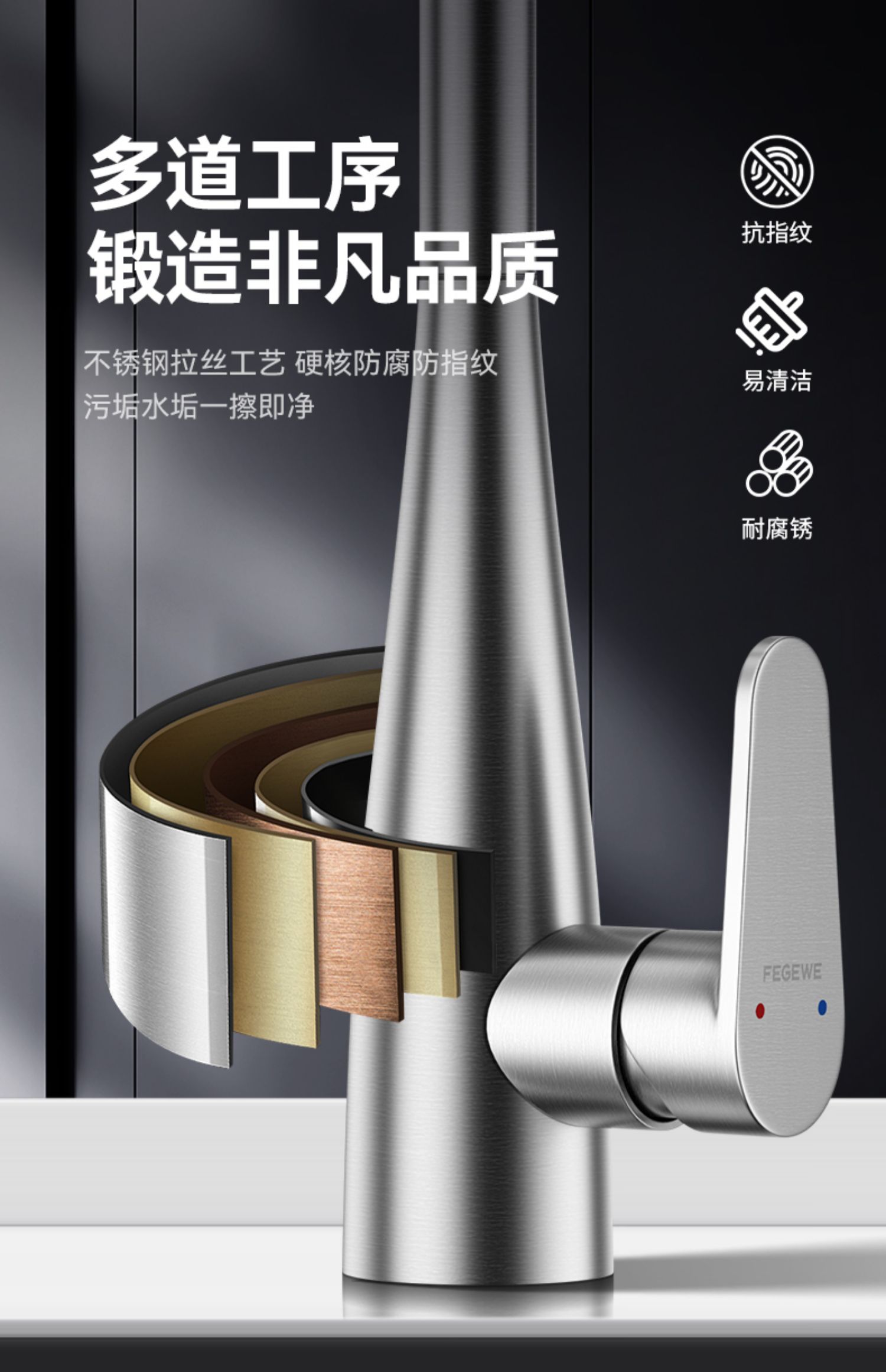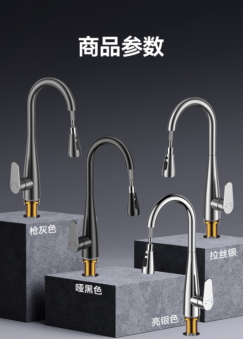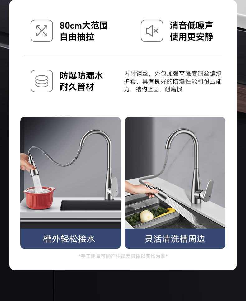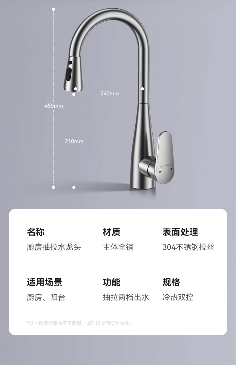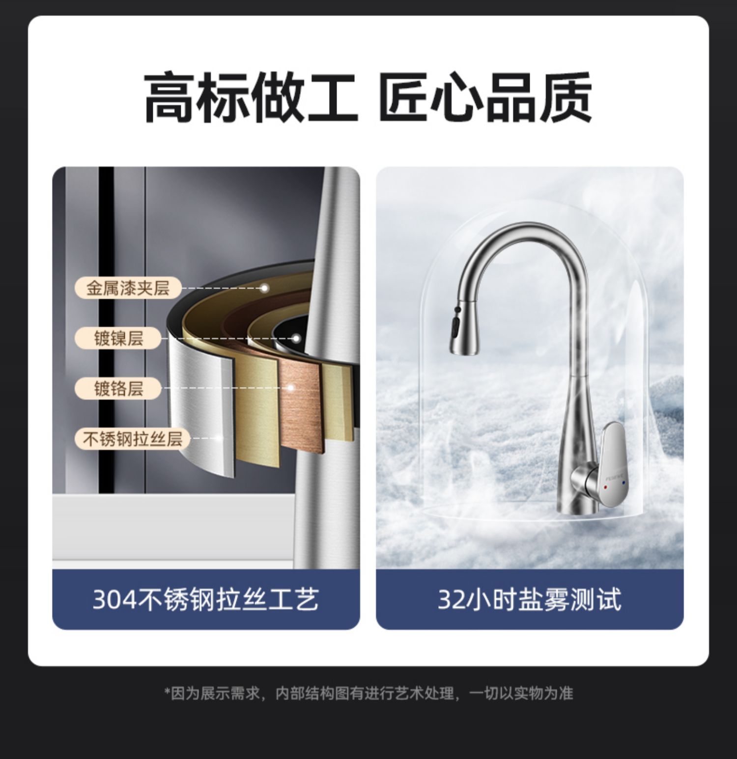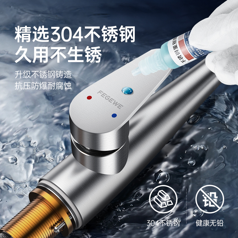 304不锈钢【拉丝银】◆冷热抽拉三档(顺滑抽拉不卡顿)