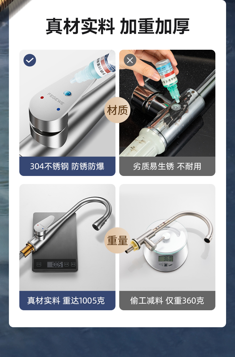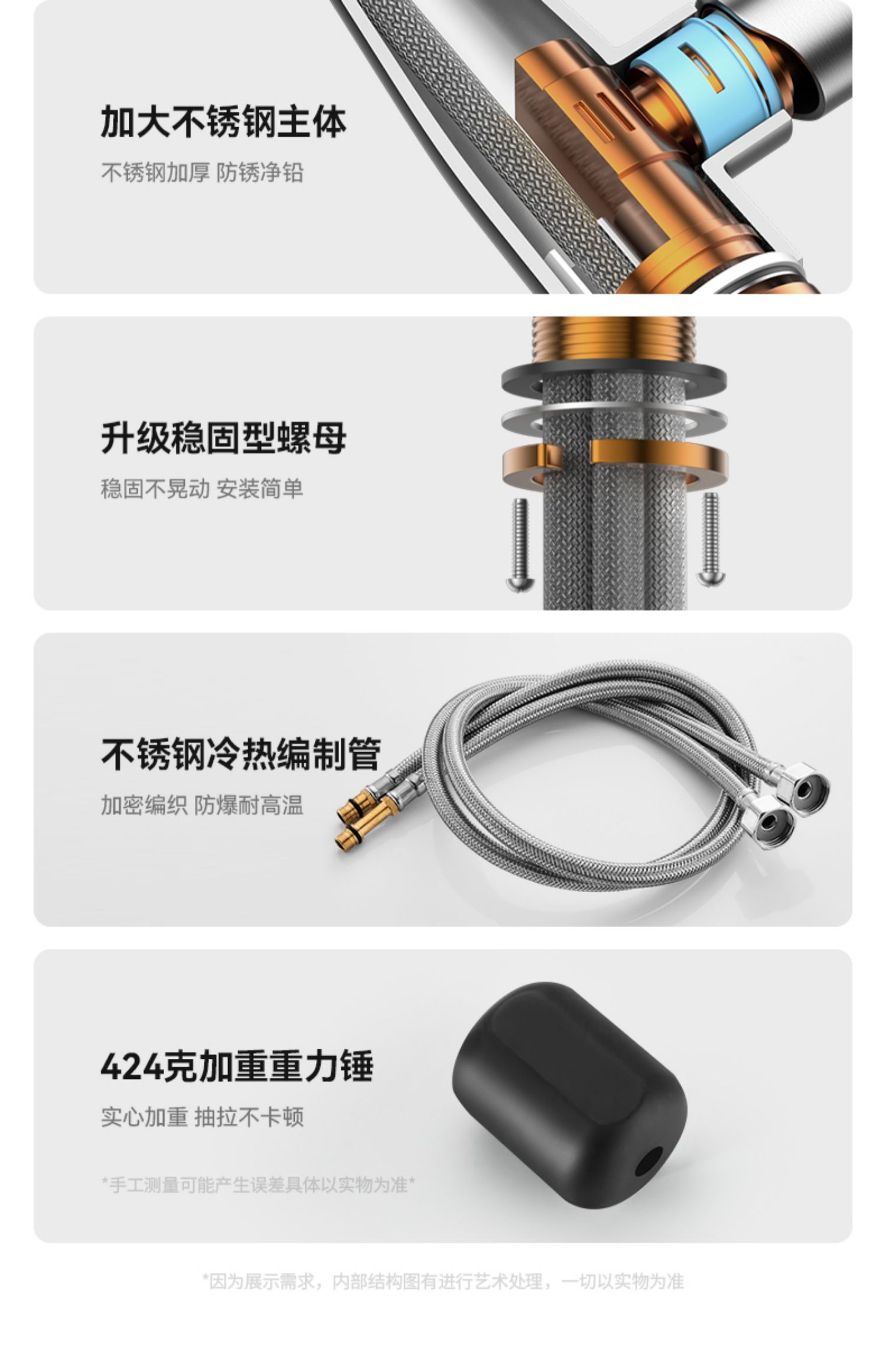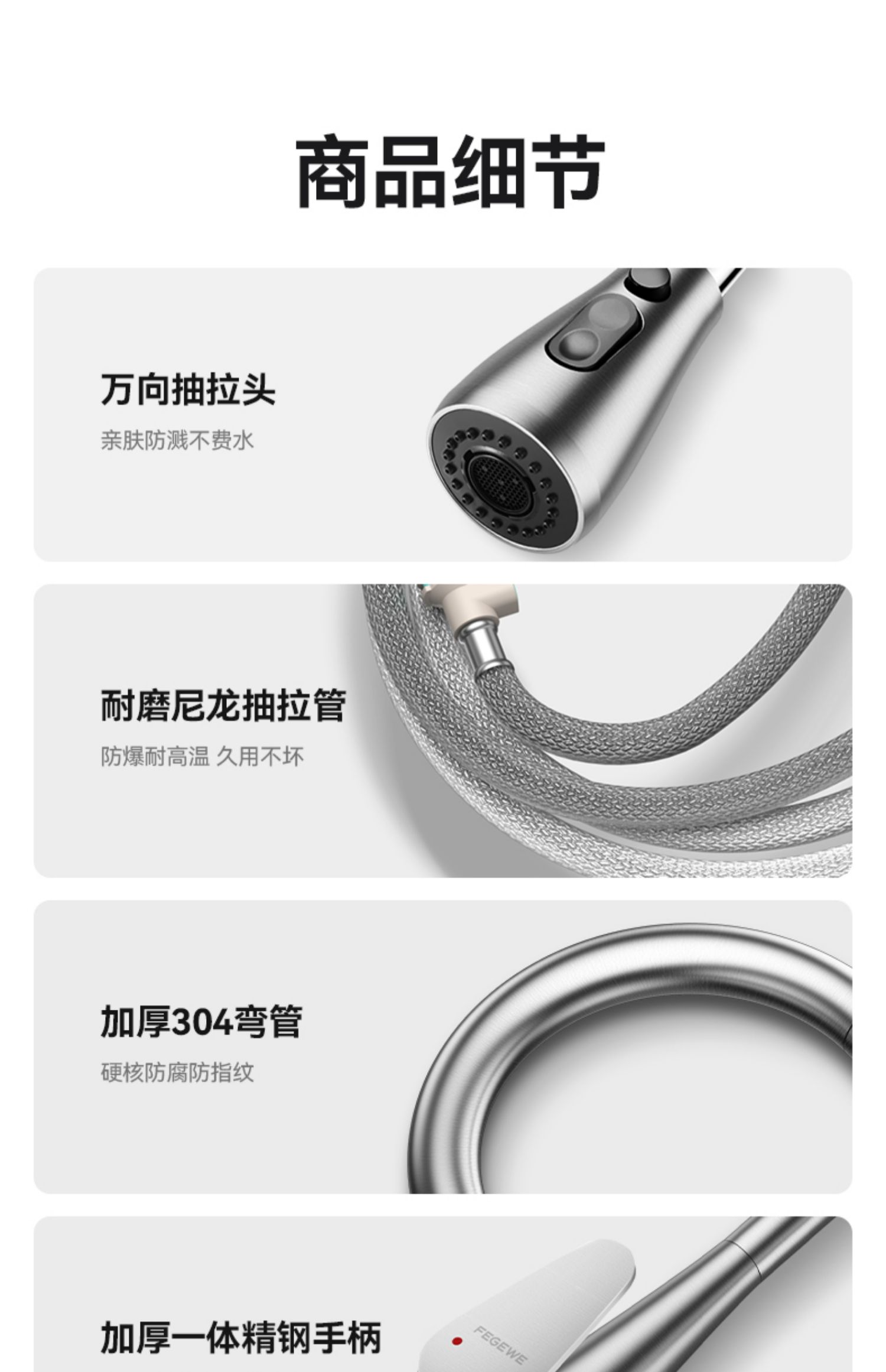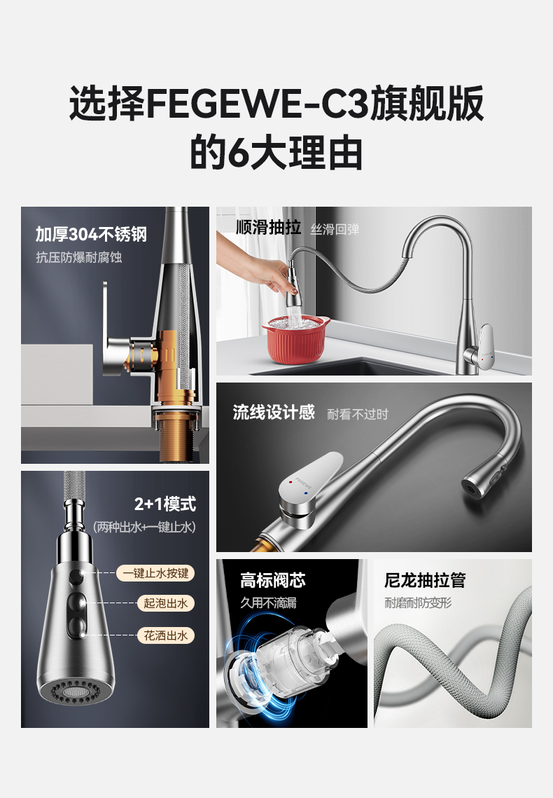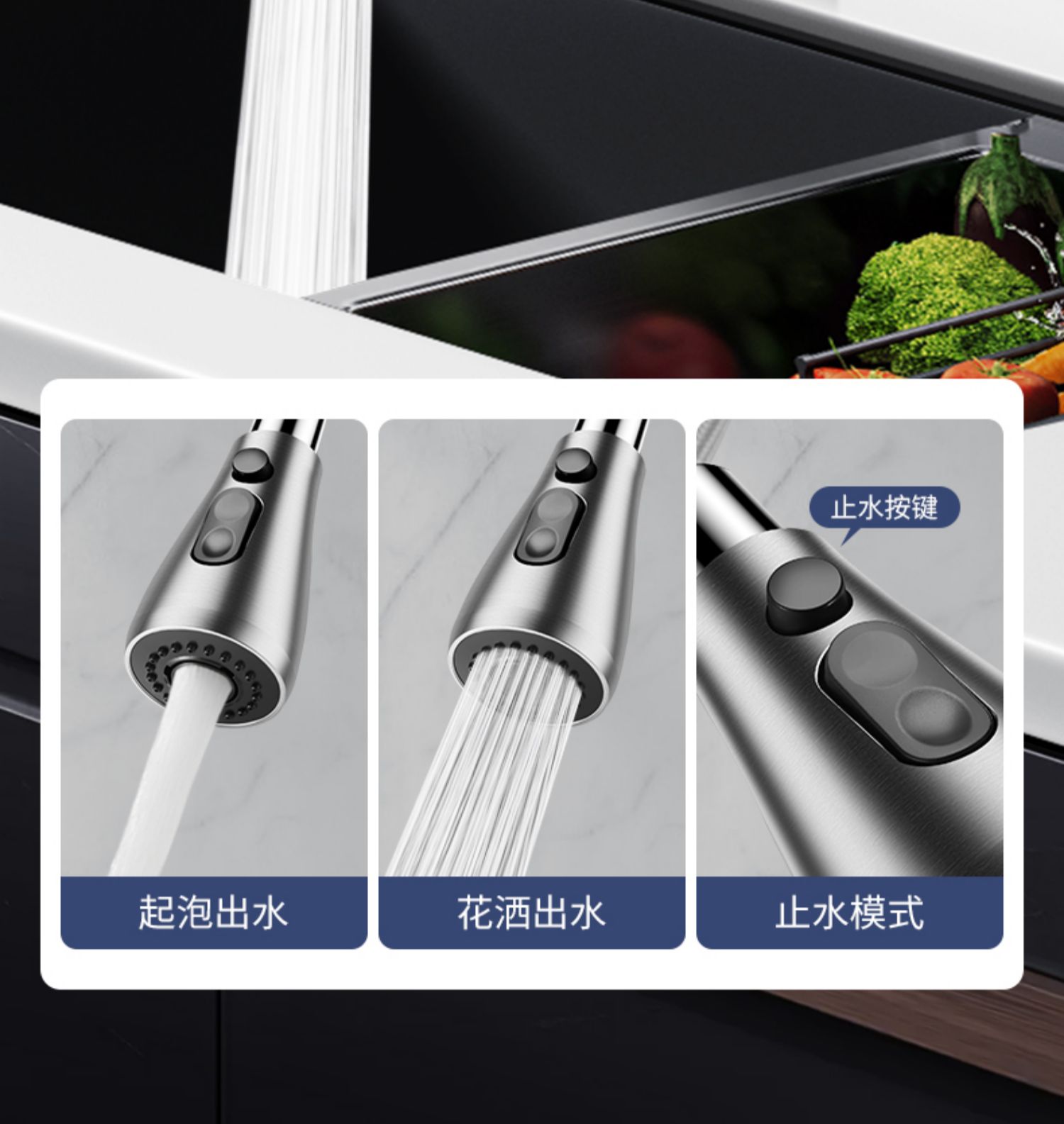304不锈钢【拉丝银】◆冷热抽拉三档(顺滑抽拉不卡顿)