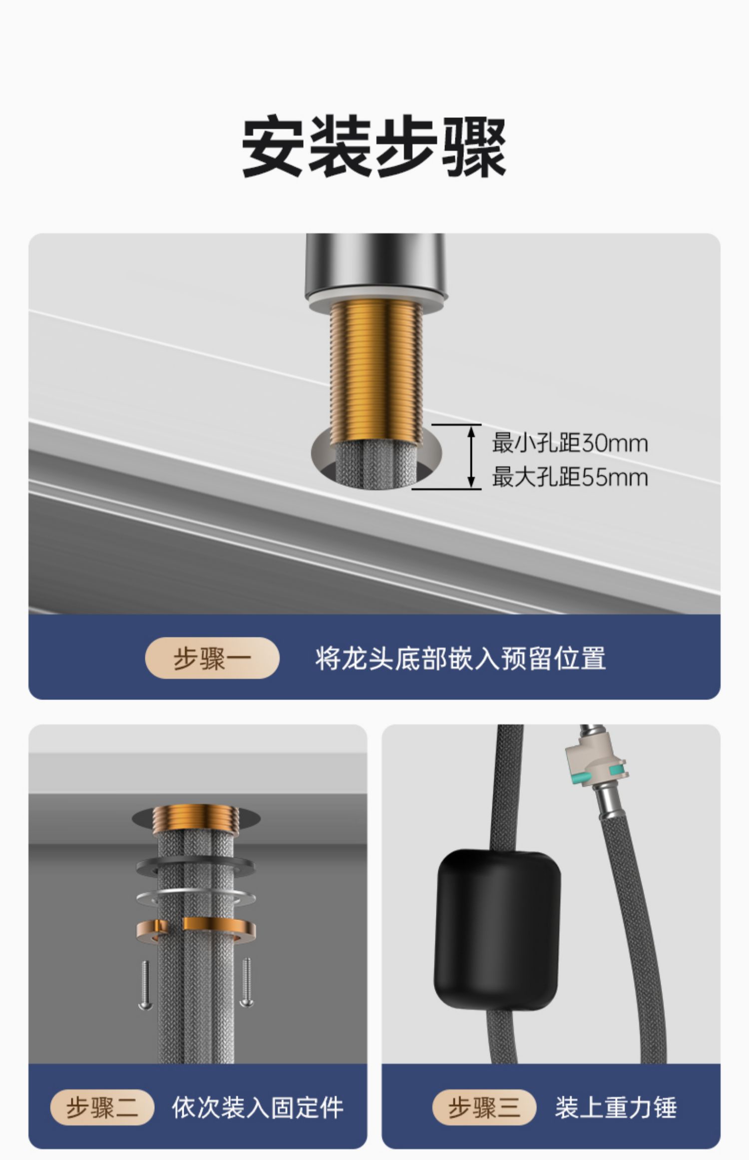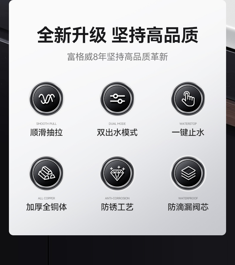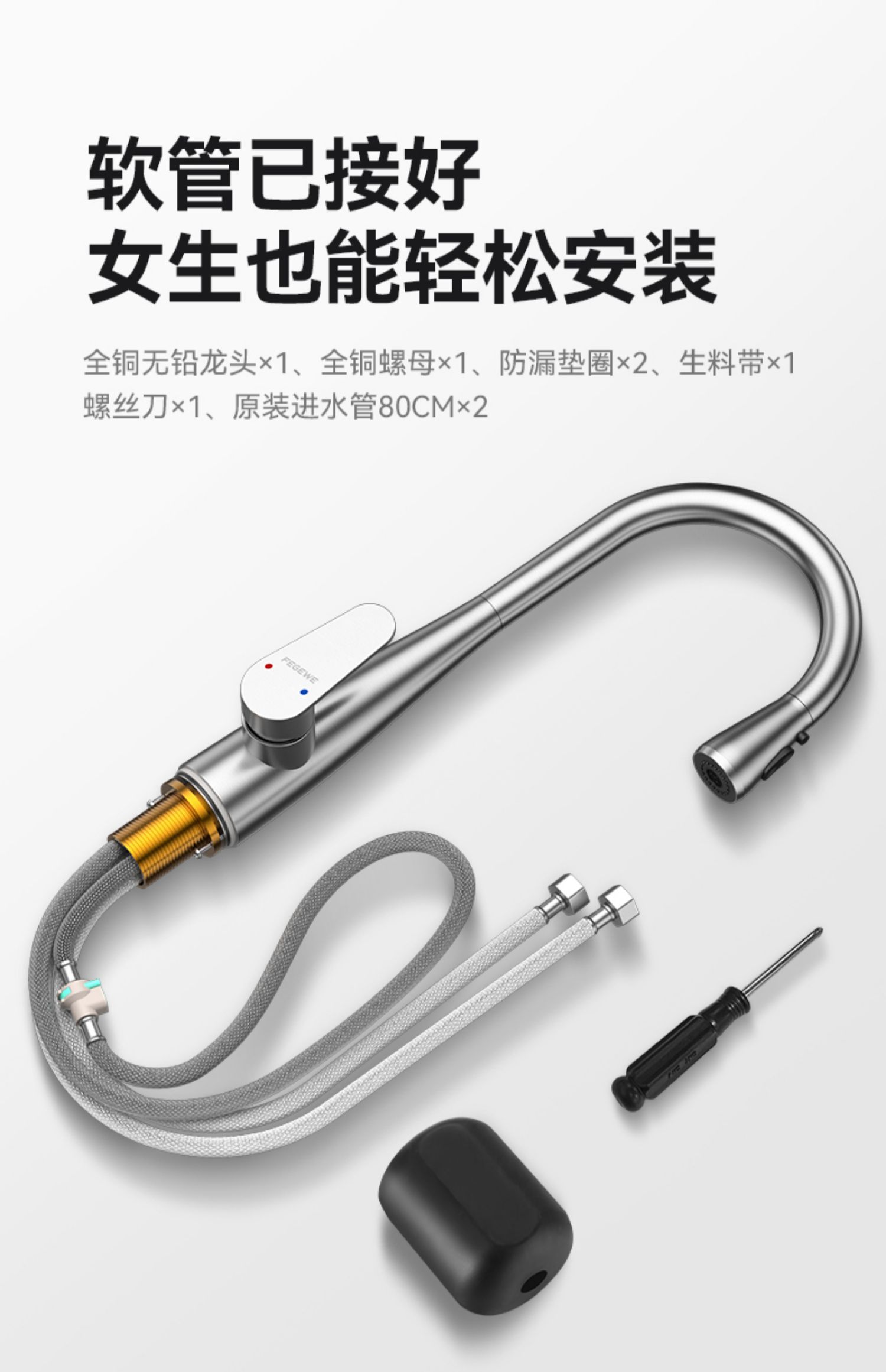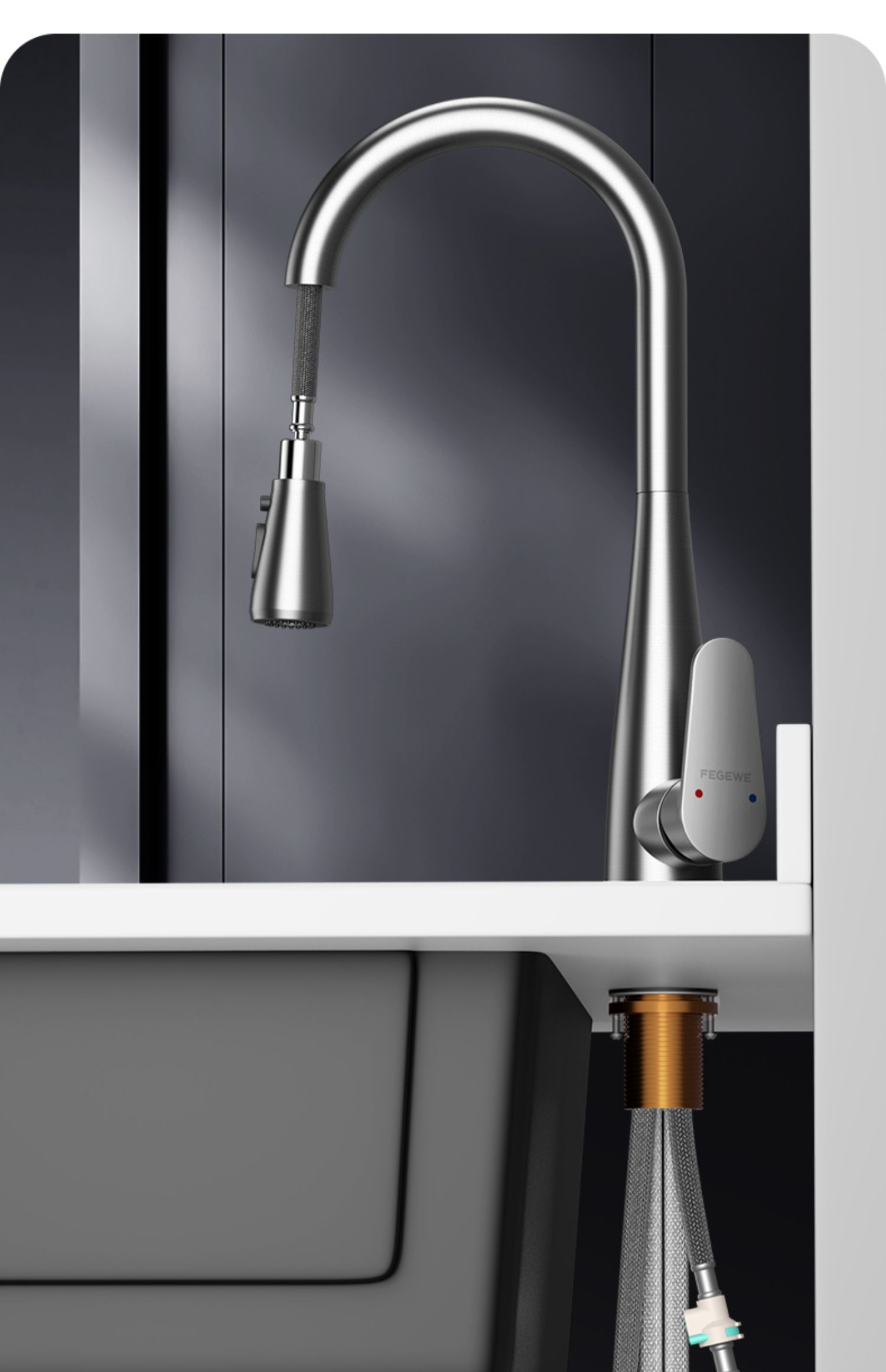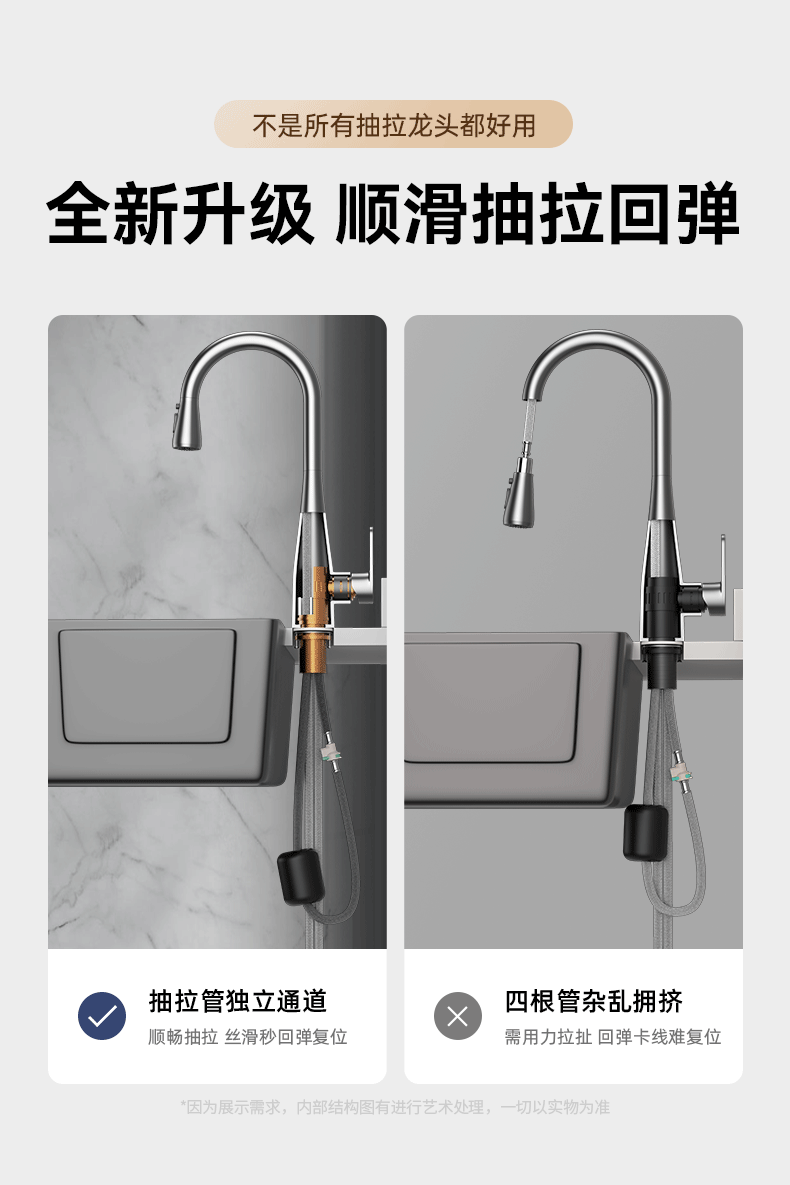 304不锈钢【拉丝银】◆冷热抽拉三档(顺滑抽拉不卡顿)
