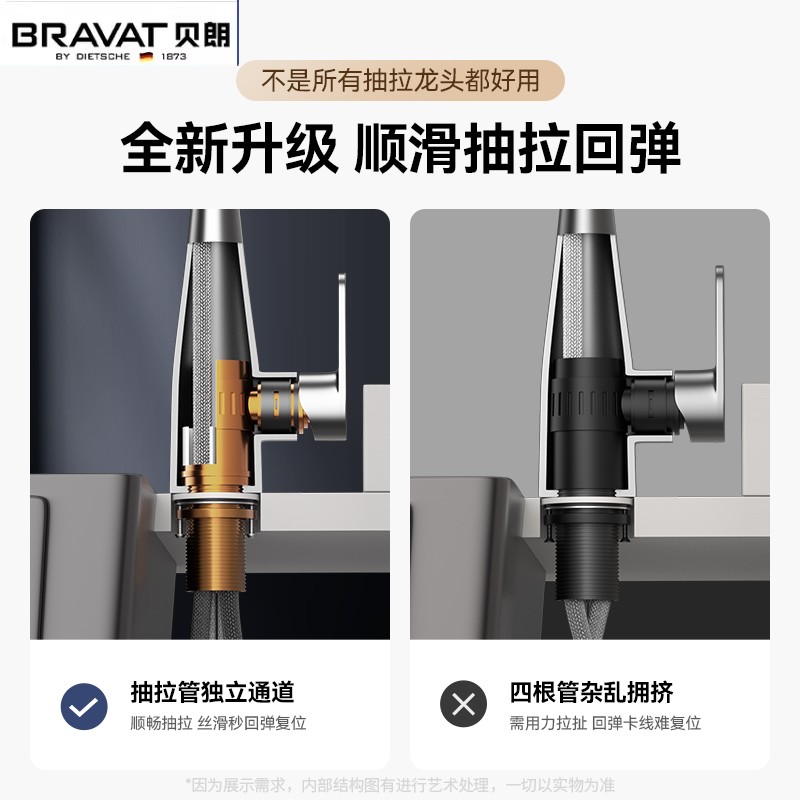 德国贝朗全精铜厨房水龙头伸缩款抽拉式洗菜盆水槽洗碗池冷热水二