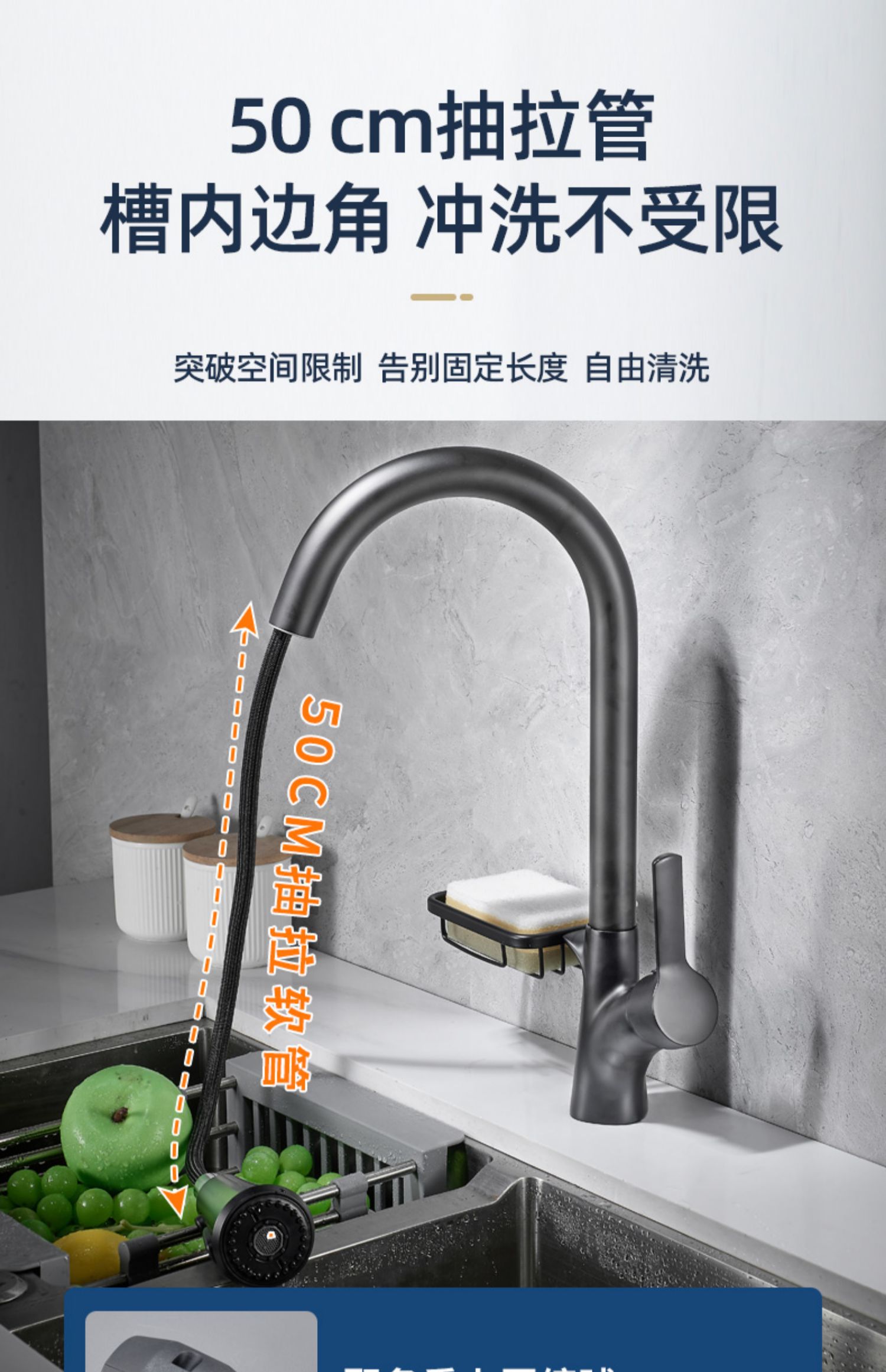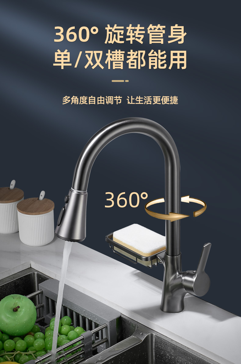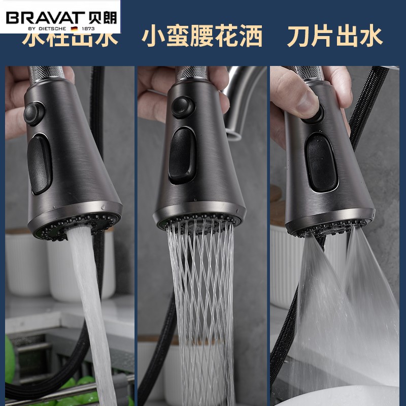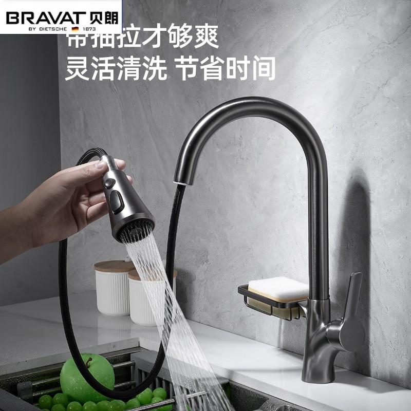 首页 >> 德国贝朗枪灰色厨房抽拉式水龙头冷热洗菜盆水槽洗碗池洗衣池万向
