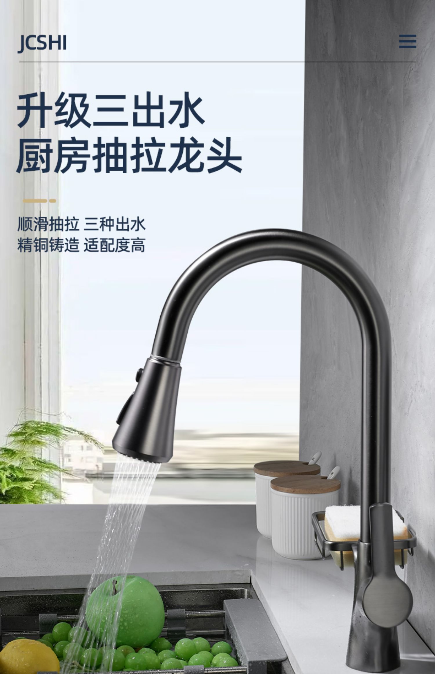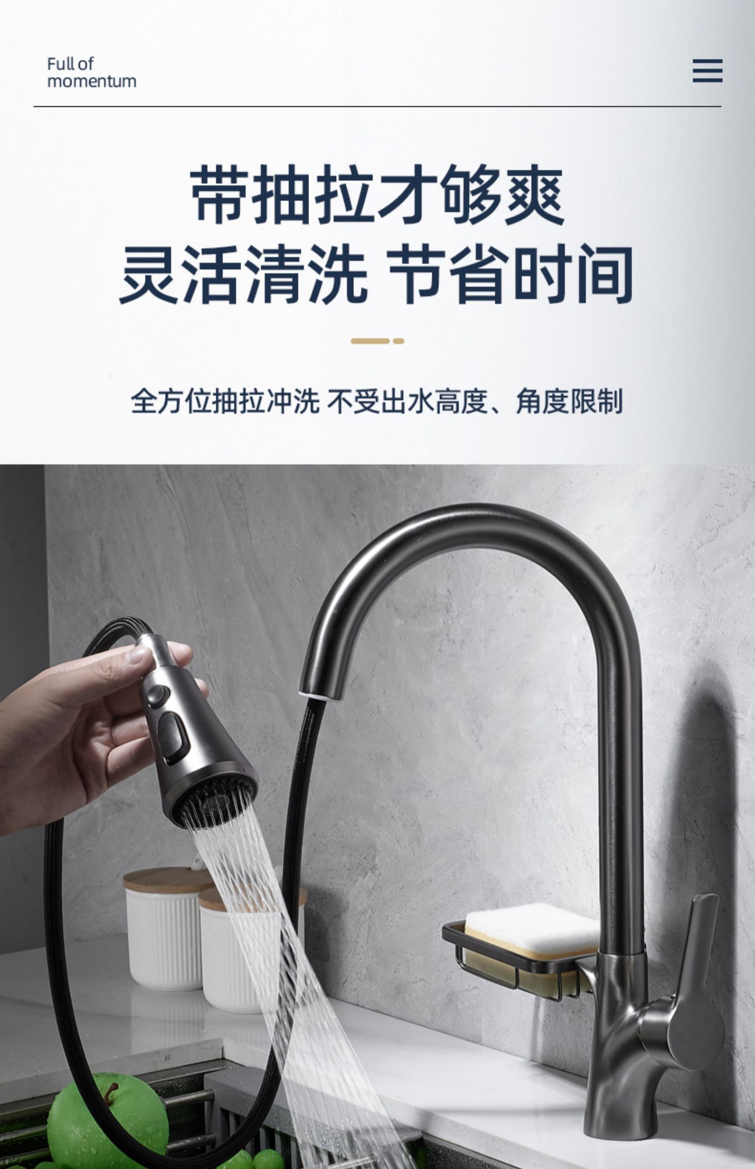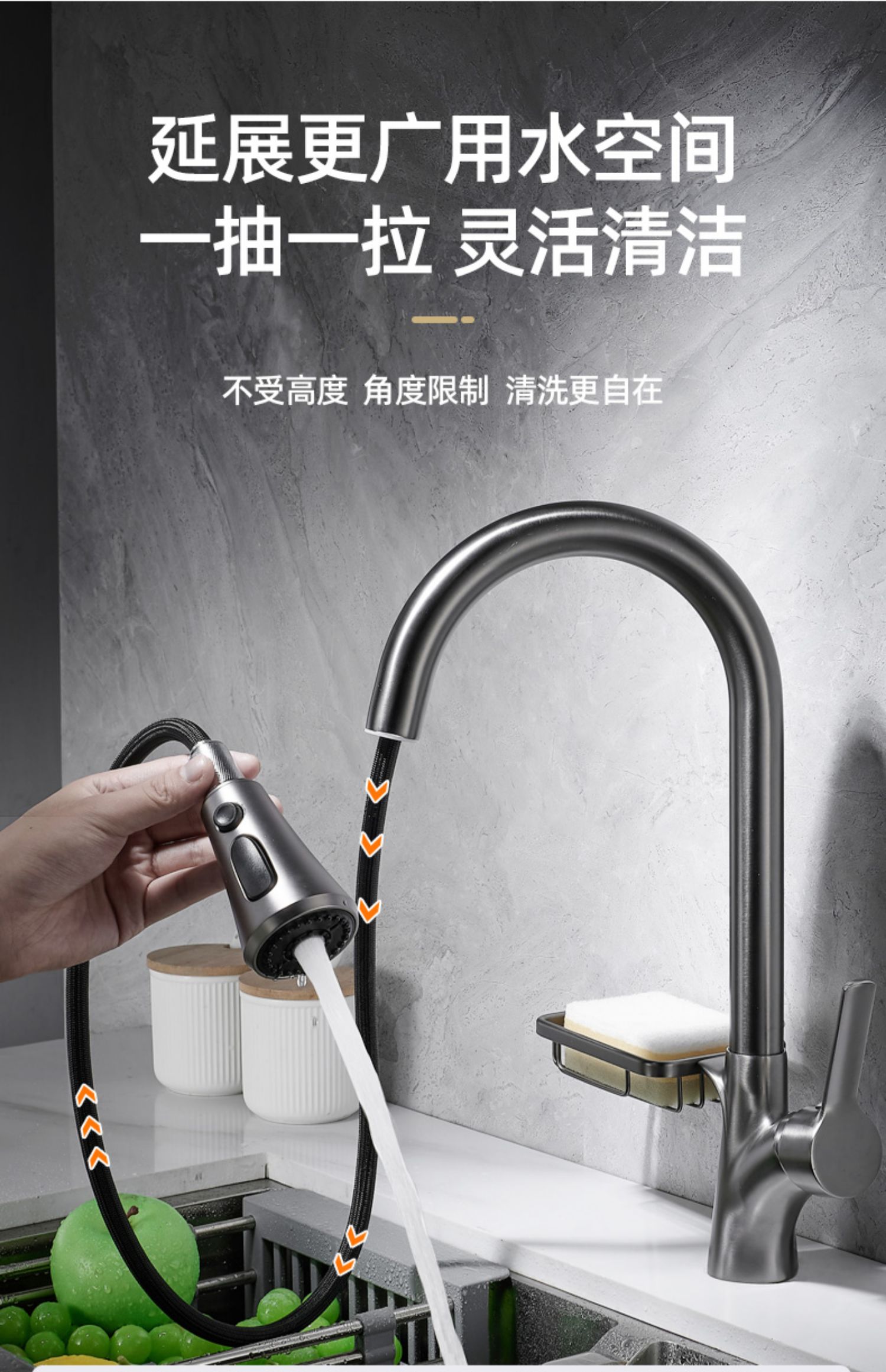 首页 >> 德国贝朗枪灰色厨房抽拉式水龙头冷热洗菜盆水槽洗碗池洗衣池万向