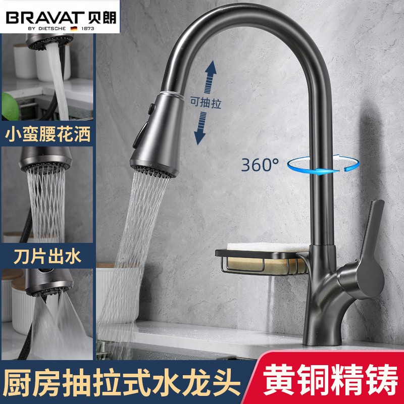 德国贝朗全精铜厨房水龙头伸缩款抽拉式洗菜盆水槽洗碗池冷热水二