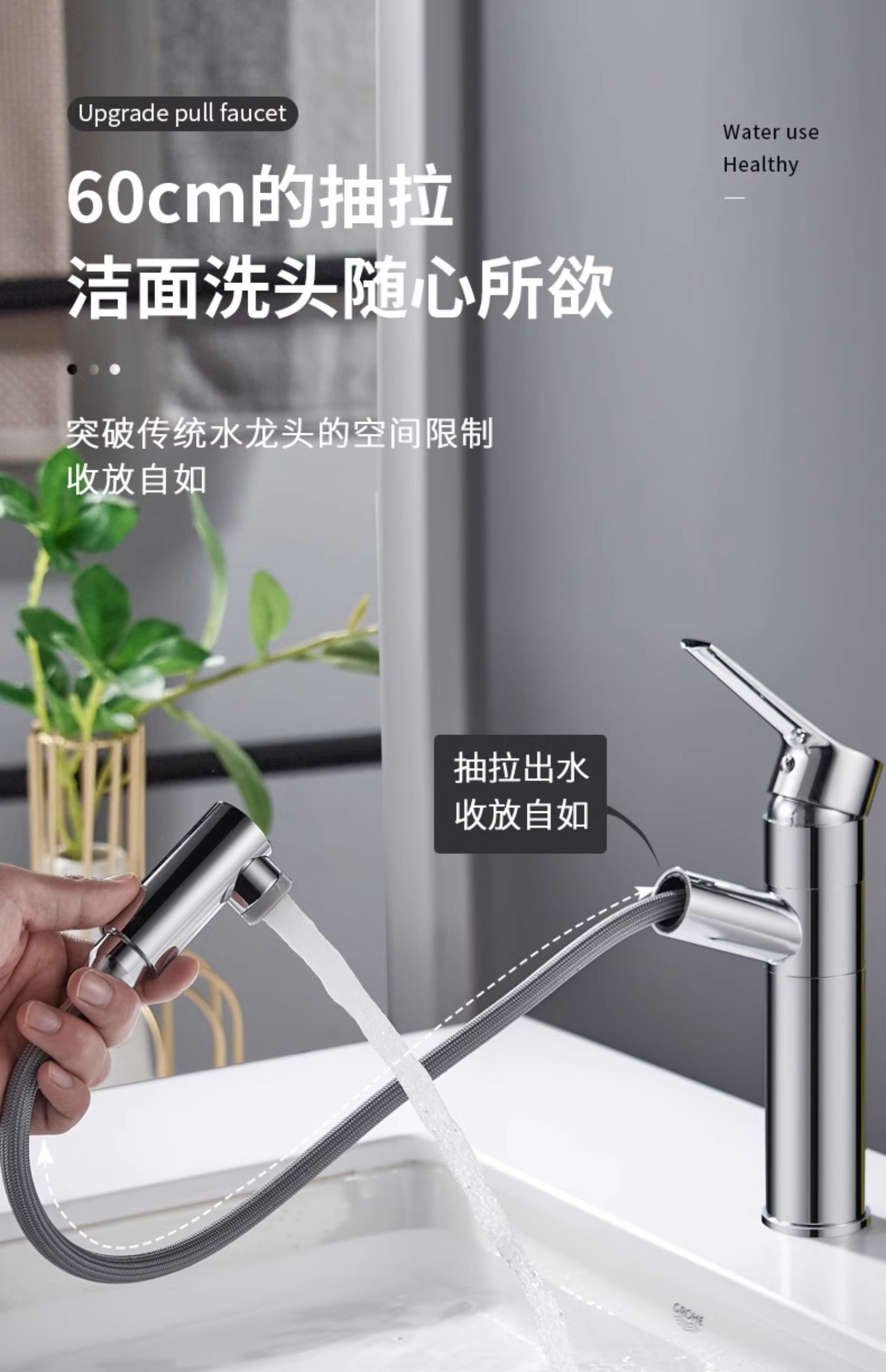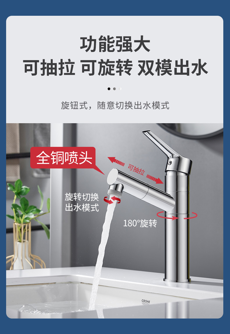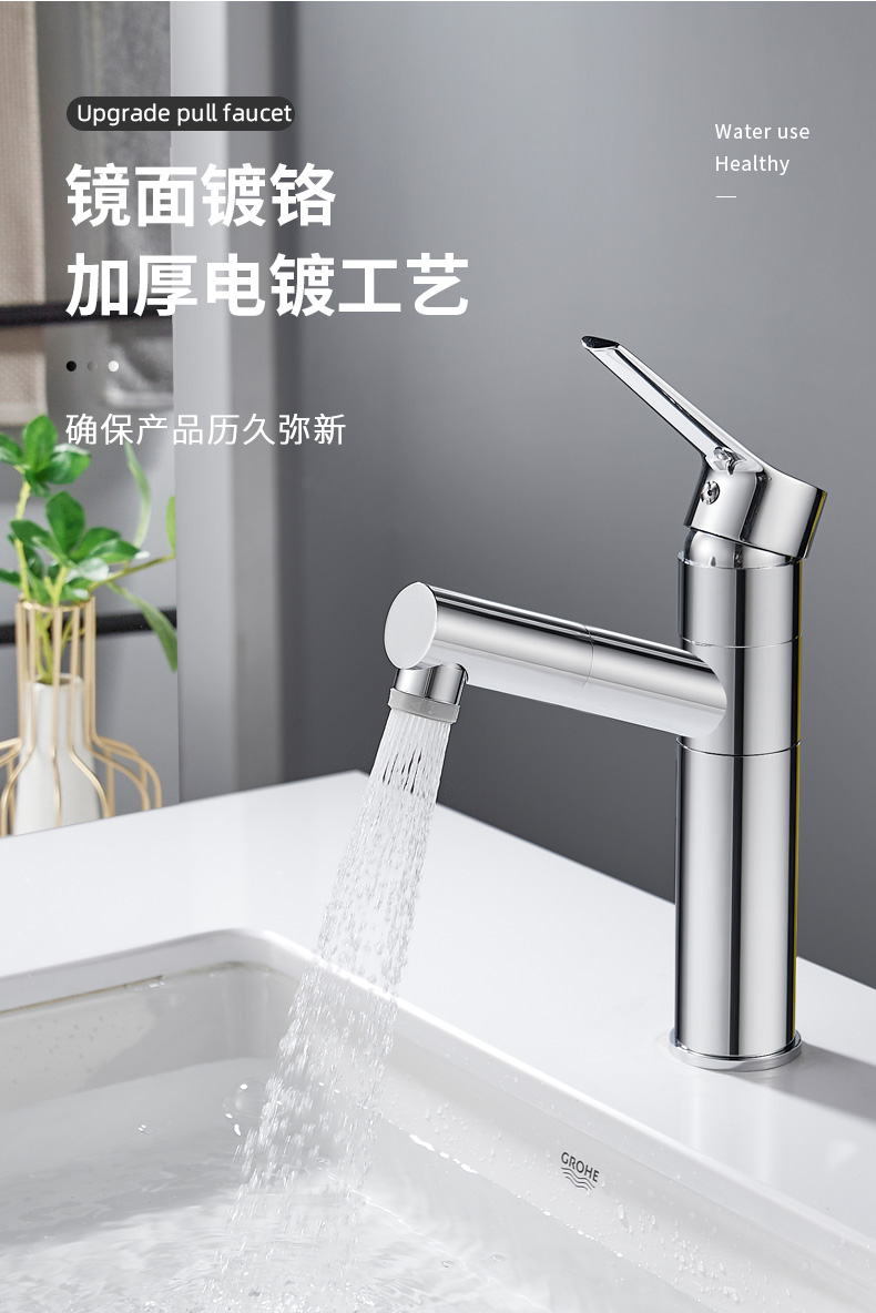 德国贝朗抽拉式水龙头卫生间洗脸盆 浴室台盆洗手盆