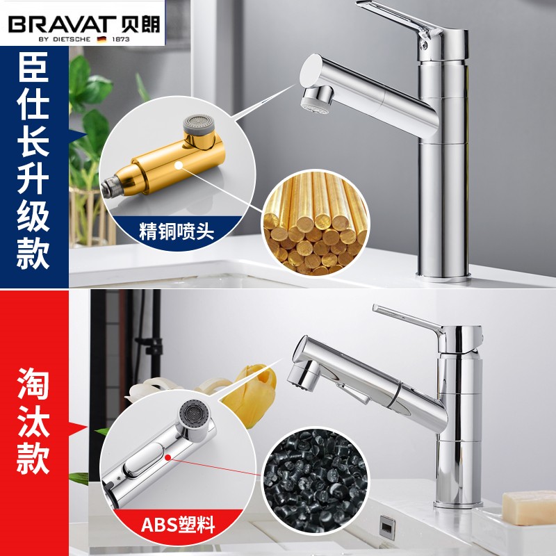 德国贝朗全精铜厨房水龙头伸缩款抽拉式洗菜盆水槽洗碗池冷热水二