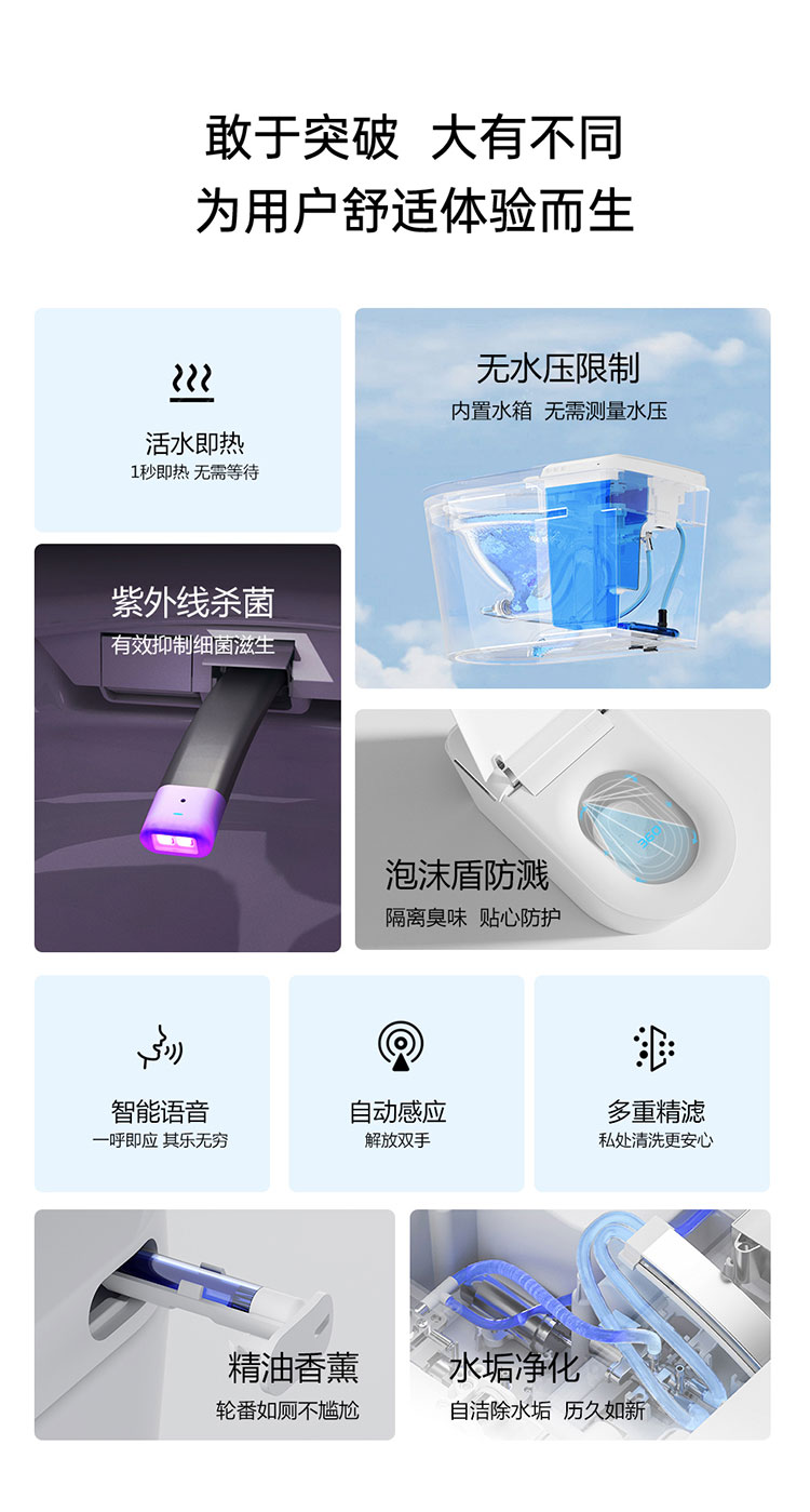 首页 >> 德国贝朗irelia智能马桶一体式带水箱无水压限制全自动内置泡沫盾