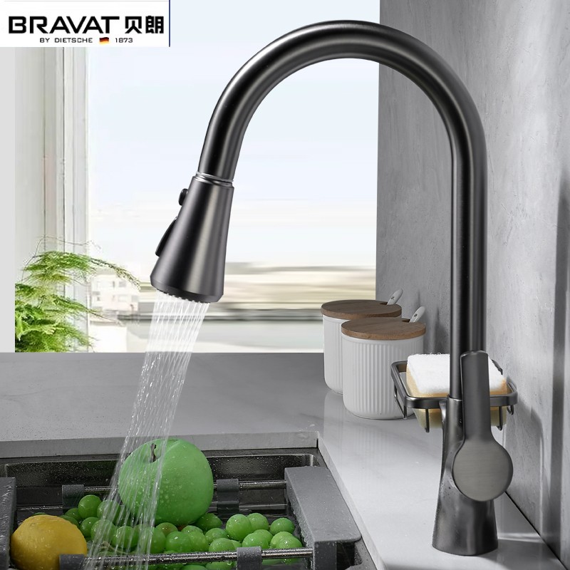 德国贝朗枪灰色厨房抽拉式水龙头冷热洗菜盆水槽洗碗池洗衣池万向