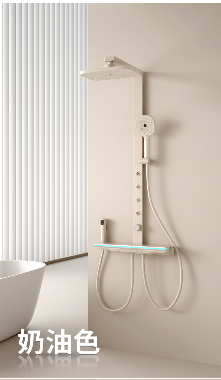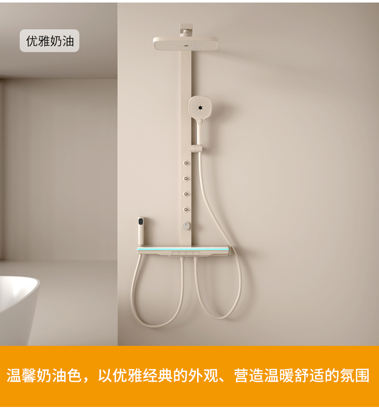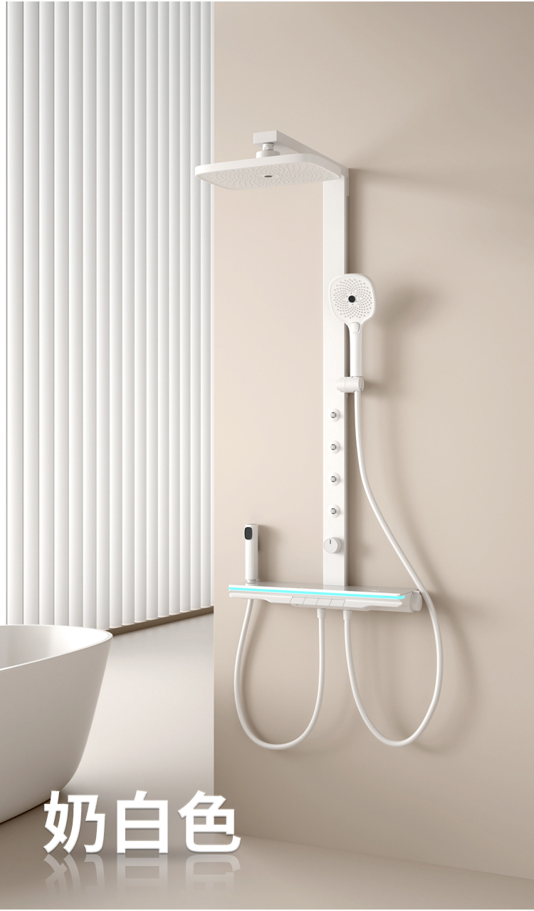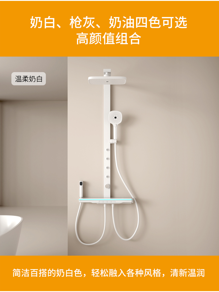 奶白大方杆淋雨腰喷花洒恒温款