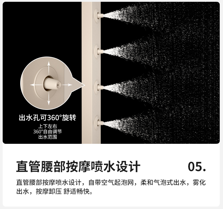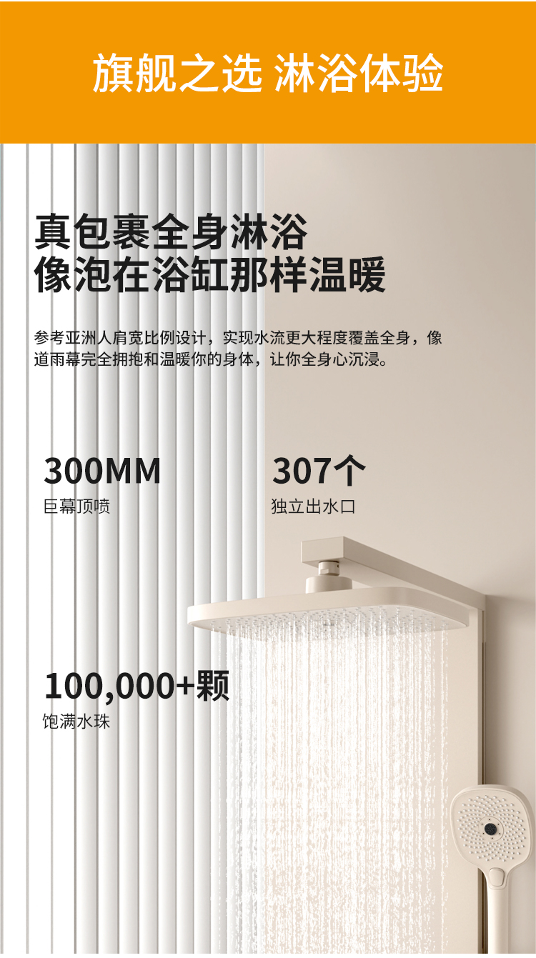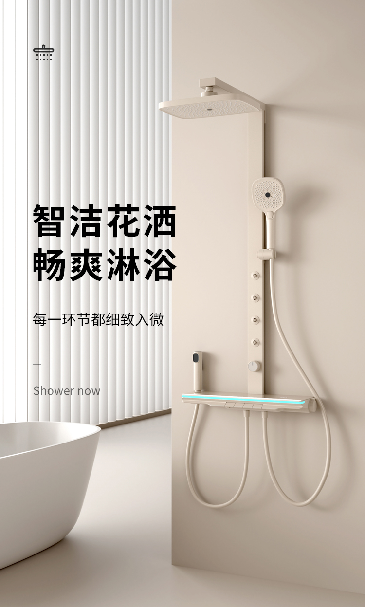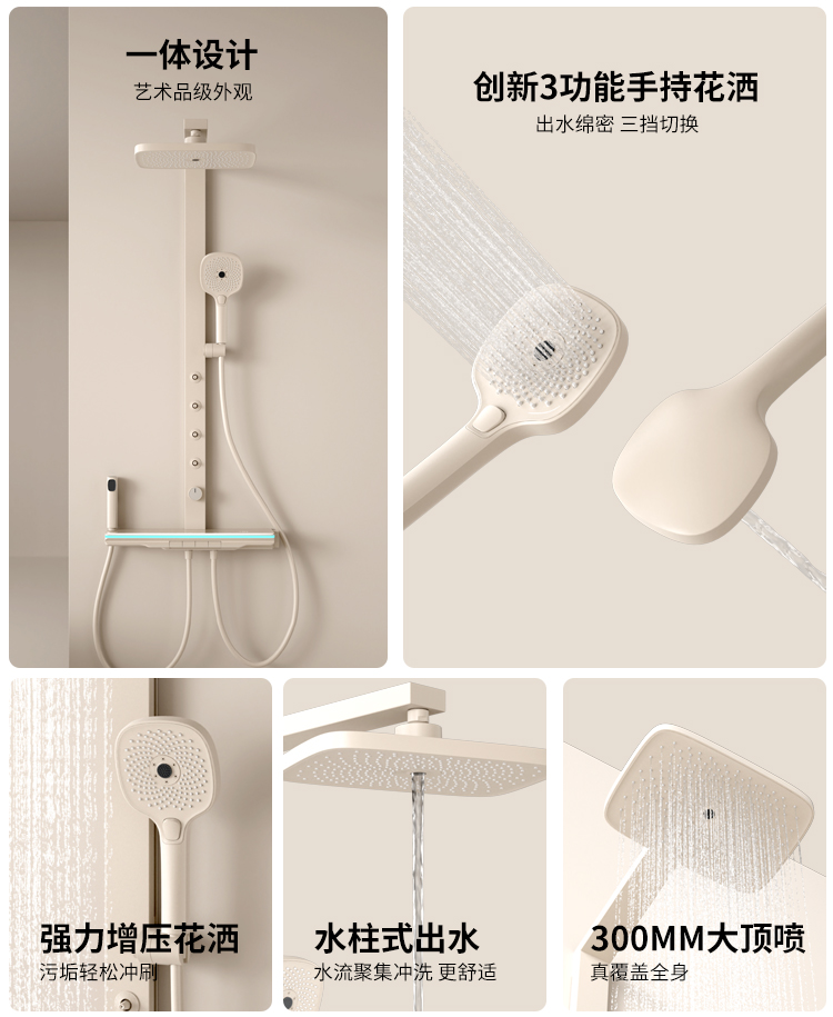 奶白大方杆淋雨腰喷花洒恒温款
