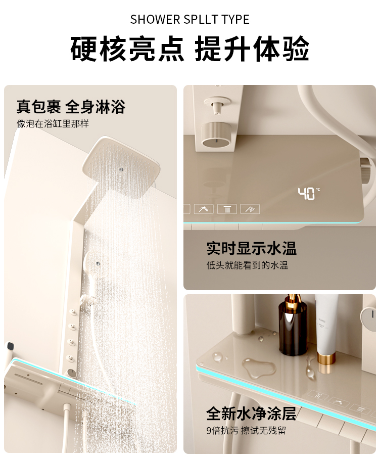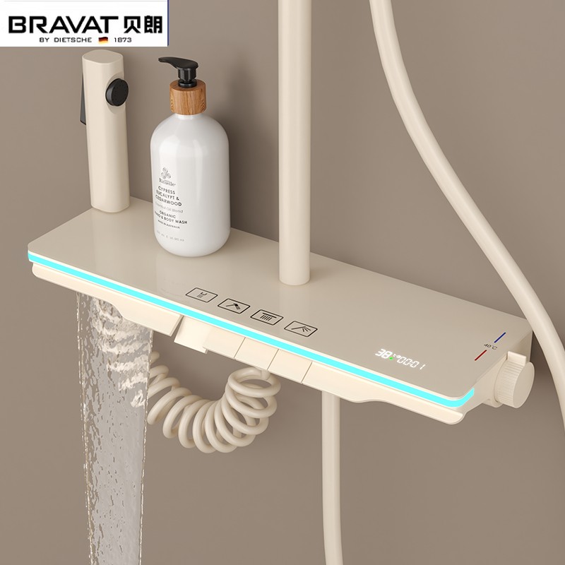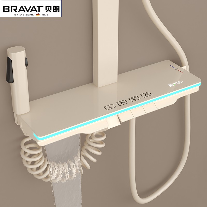 首页 >> 德国贝朗恒温淋浴花洒套装家用全铜浴室智能卫浴数显氛围灯沐浴器