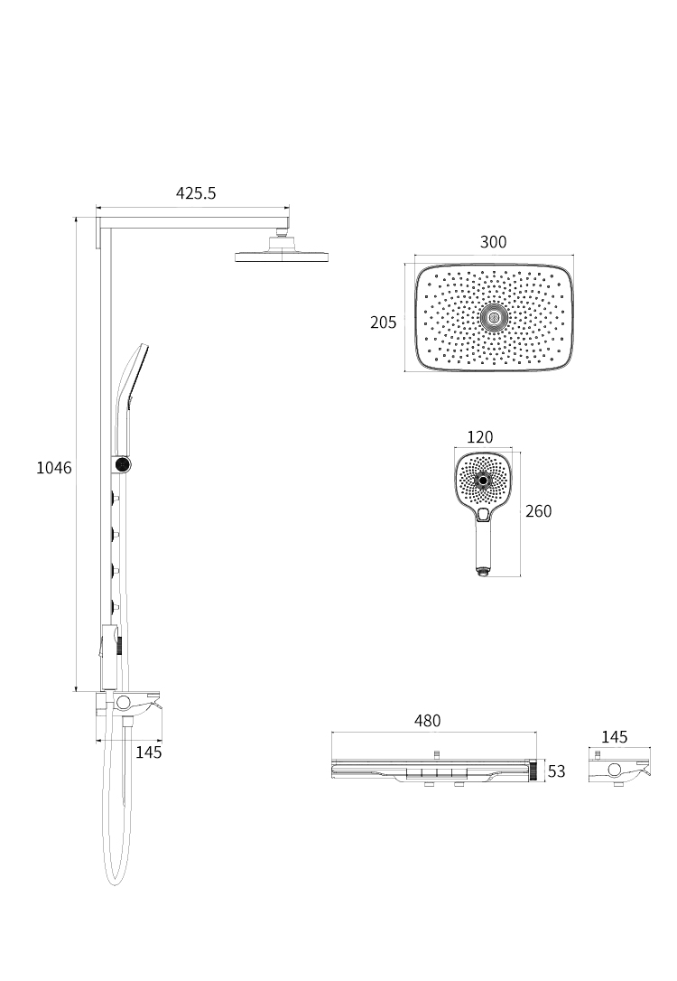 枪灰大方杆淋雨腰喷花洒恒温款