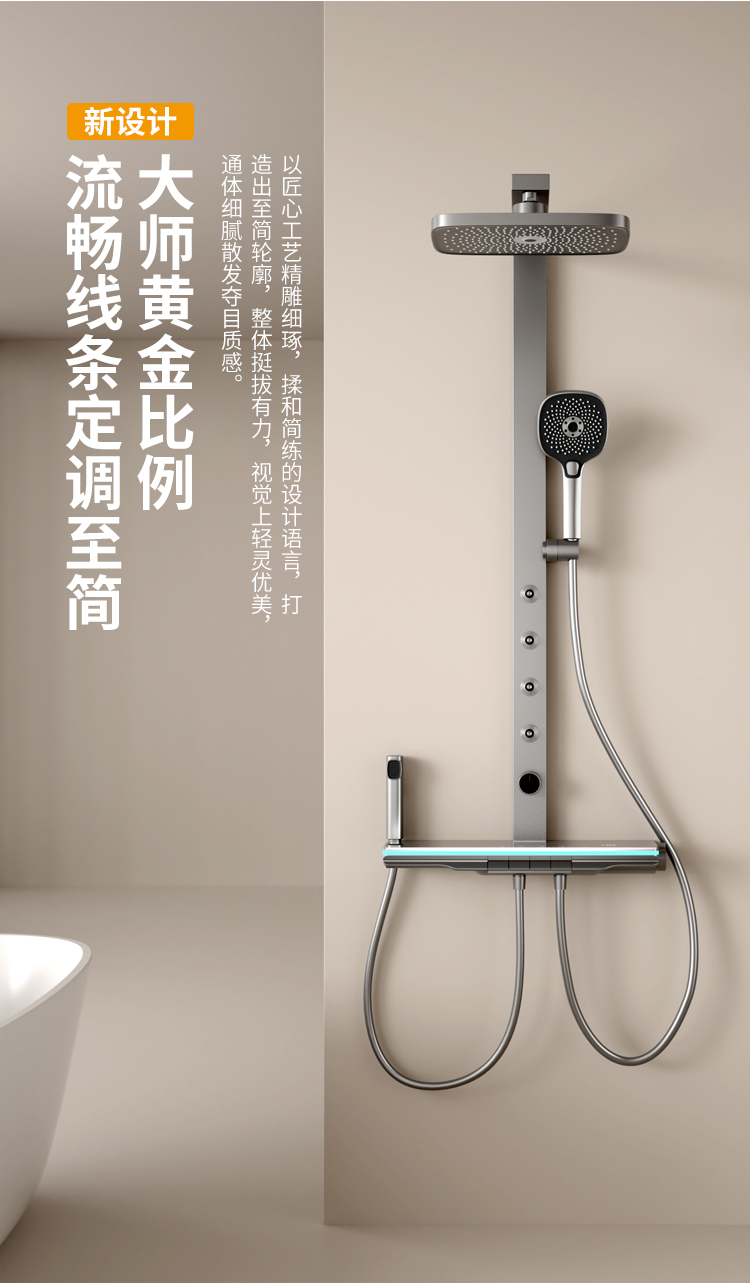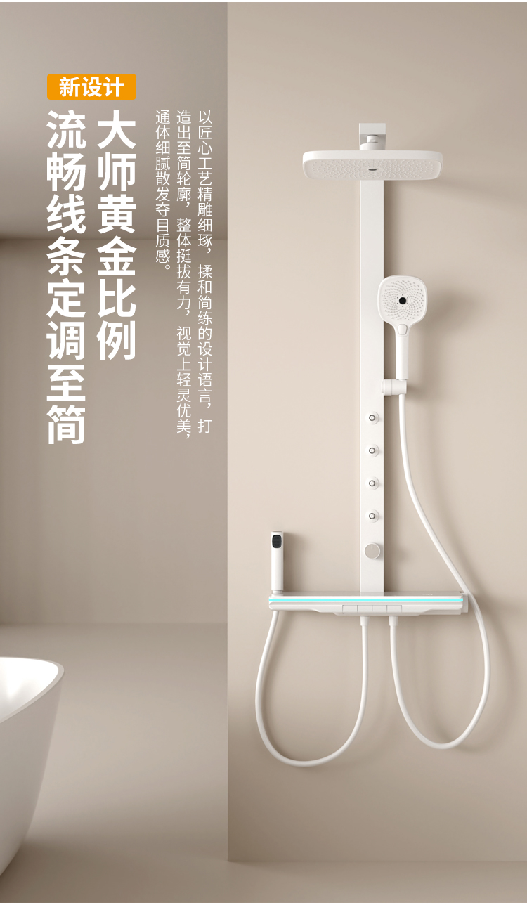 哑白大方杆淋雨腰喷花洒恒温款
