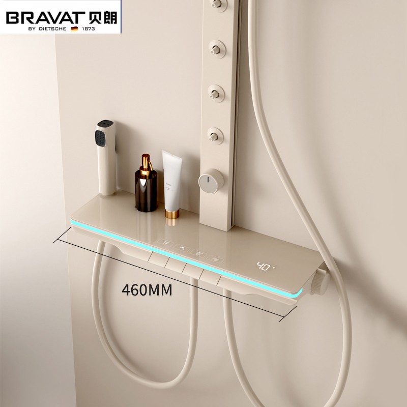 德国贝朗恒温淋浴花洒套装家用全铜浴室智能卫浴数显氛围灯沐浴器